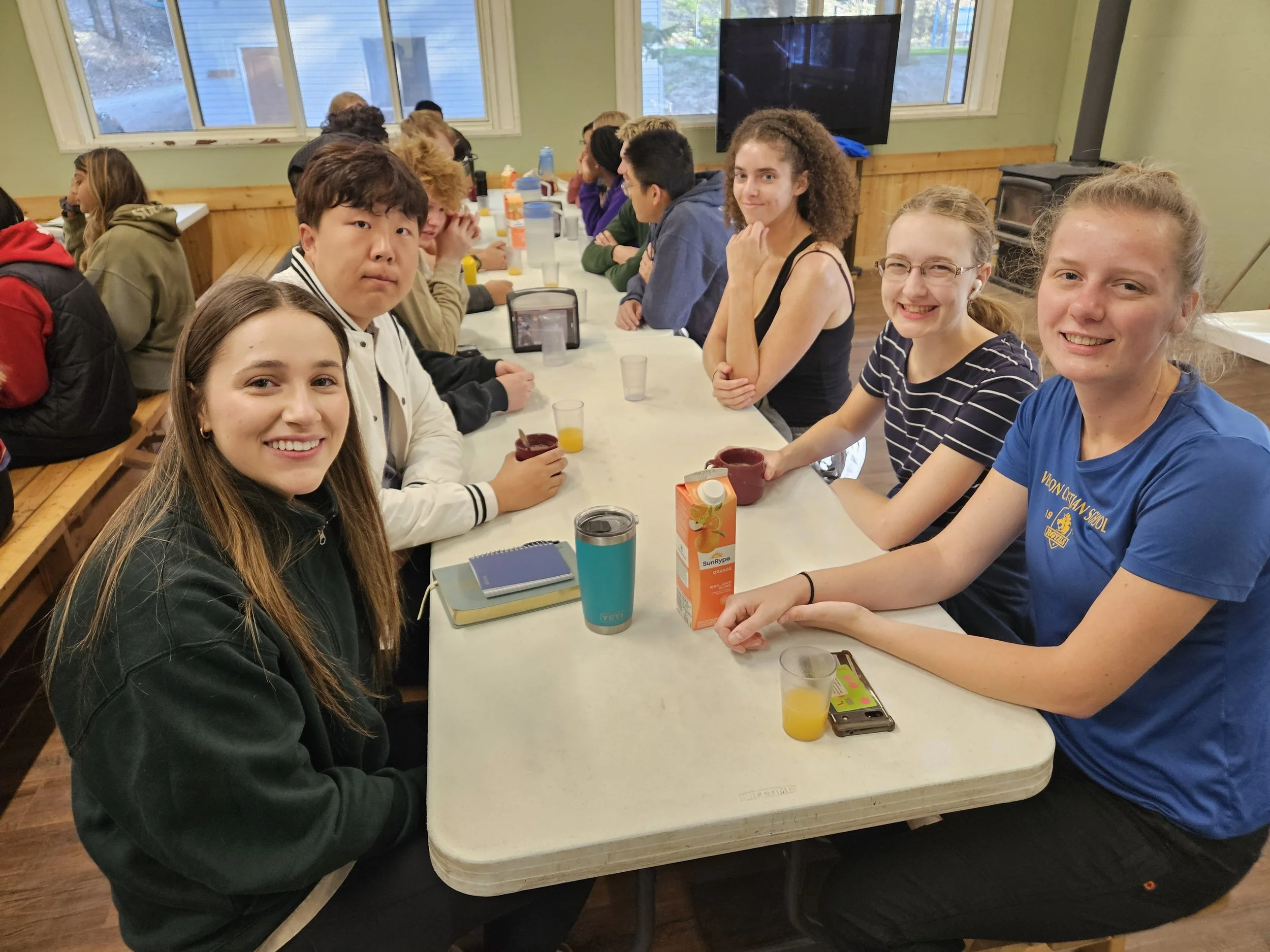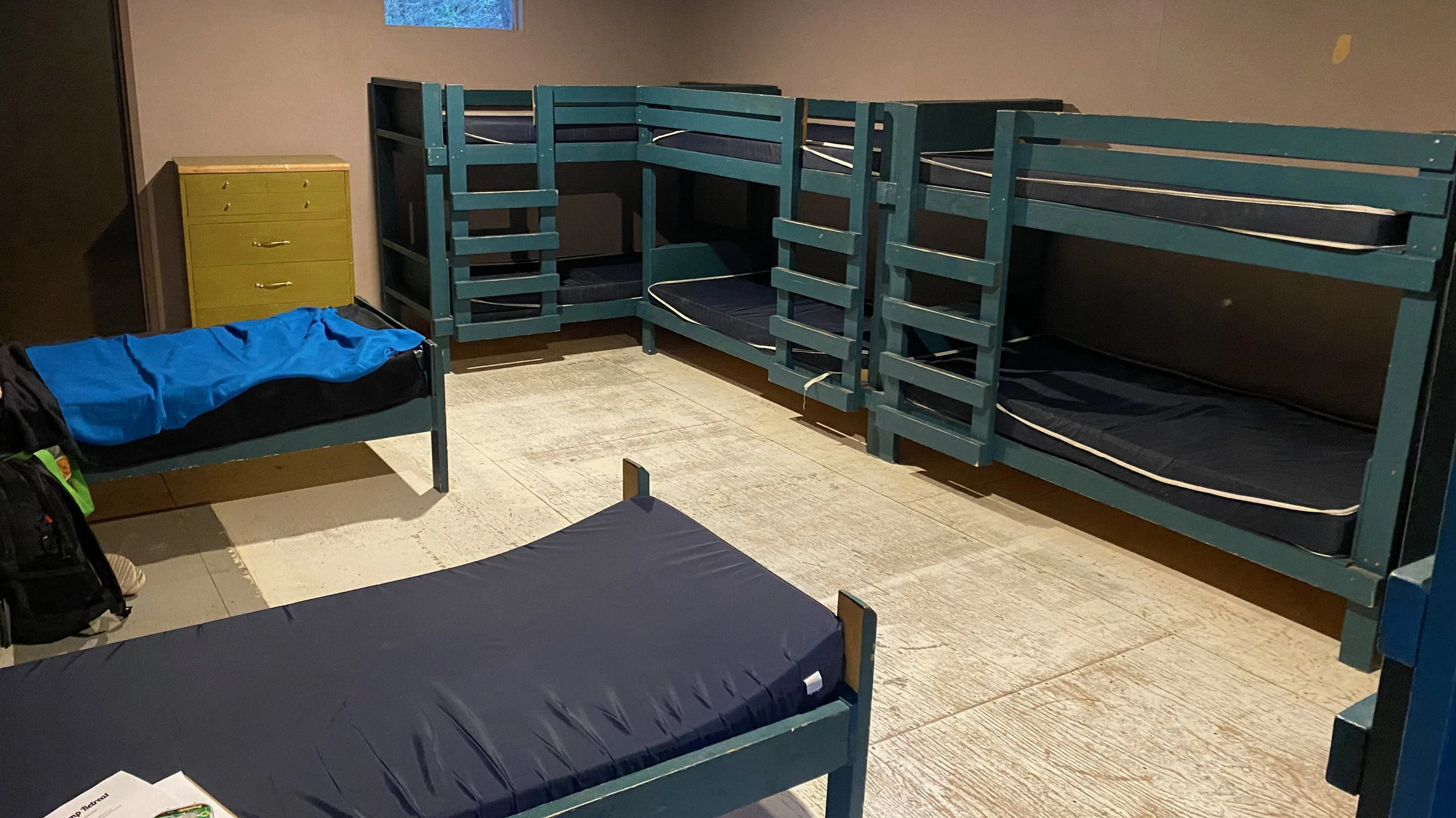 We will be lodging in dorm-style cabins. Each cabin has a number of bunkbeds with mattresses. Be sure to bring your own pillow, warm bedding, towel and soap. On our registration form you'll be able to request any preferred roommates. The women’s dorm has bathrooms and showers attached. The men’s dorms will use the bathroom and showers located below the main dining hall.